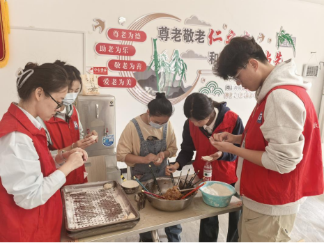 一到社区,志愿者就帮助清扫卫生,和老人们拉家常,向爱心食堂献上慰问品,帮助社区工作人员包水饺。对于行动不变的老人,志愿者将打包好的水饺、饭菜送到老人家中,并送上重阳节的浓情问候和关怀祝福。