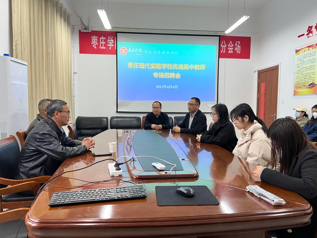 为进一步激发毕业生充分就业、及早就业意识,促进供需对接,助力毕业生高质量就业。2023年4月4日,永利23411集团举办优选高中教师专场招聘会。枣庄现代实验学校校长姜德仁、永利23411集团党总支书记王海峰出席会议,招聘会由永利23411集团副院长吕长青主持。