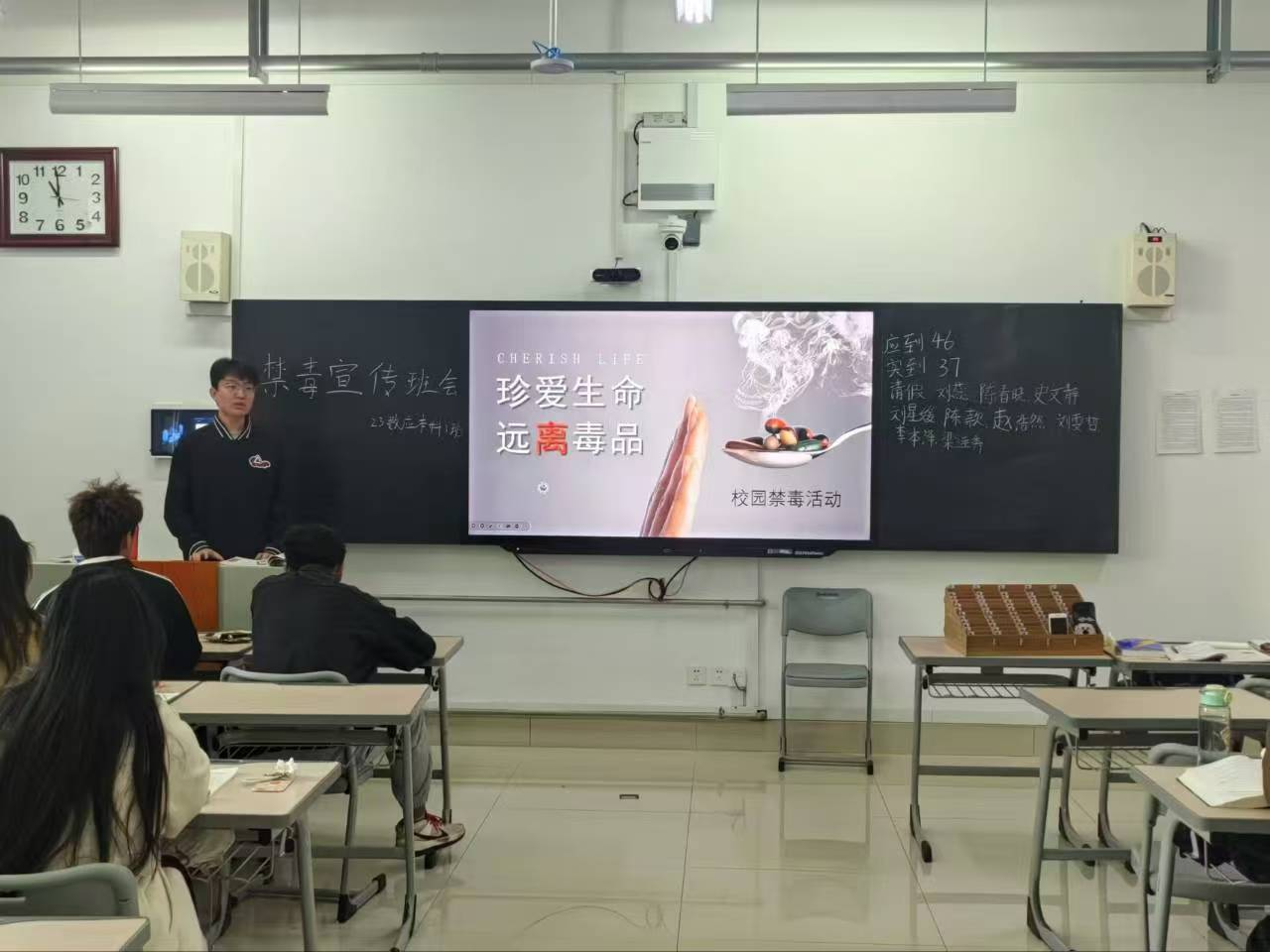 禁毒班会通过播放禁毒教育片、展示毒品样本图片、讲解真实案例等多种形式,向同学们详细介绍了毒品的种类、危害以及防范方法;签字仪式则是将禁毒的决心具象化,在学院的统一组织下,师生们在横幅上庄重地签下自己的名字,表达出师生对禁毒的坚定承诺。