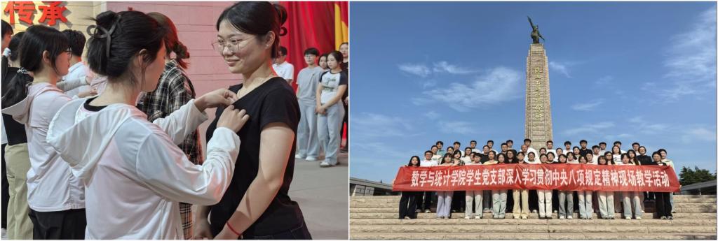 参观学习的党员们怀着崇敬的心情瞻仰了铁道游击队纪念碑,参观了铁道游击队纪念馆。馆内陈列的历史图片与珍贵文物,生动再现了铁道游击队的抗日传奇和英勇事迹,让党员们受到一次深刻的党性教育。毕业生党员为新发展的预备党员举行了佩戴党徽仪式,新老党员面对鲜红的党旗举行了庄严重温入党誓言活动。