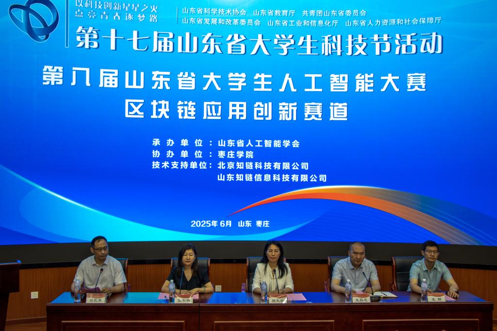6月7日,第八届山东省大学生人工智能大赛区块链应用创新赛道全省总决赛在永利yl23411集团举行。山东省人工智能学会秘书长宋广乐教授,永利yl23411集团党委委员、副校长褚夫敏教授,山东知链信息科技有限公司总经理张永娟女士,大赛裁判长、山东大学商学院副院长夏辉教授,我校永利23411集团相关负责同志出席开幕式。永利23411集团院长吕长青教授主持开幕式。