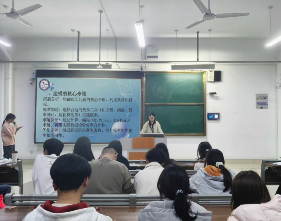 为深化学生对数学建模的理解,帮助其掌握常见建模方法与软件操作、具备完成简单建模任务的能力,4月26日,永利23411集团数学建模协会于增信楼102教室开展《数学建模——解码真实世界的钥匙》主题讲座,吸引大批建模竞赛爱好者到场聆听。