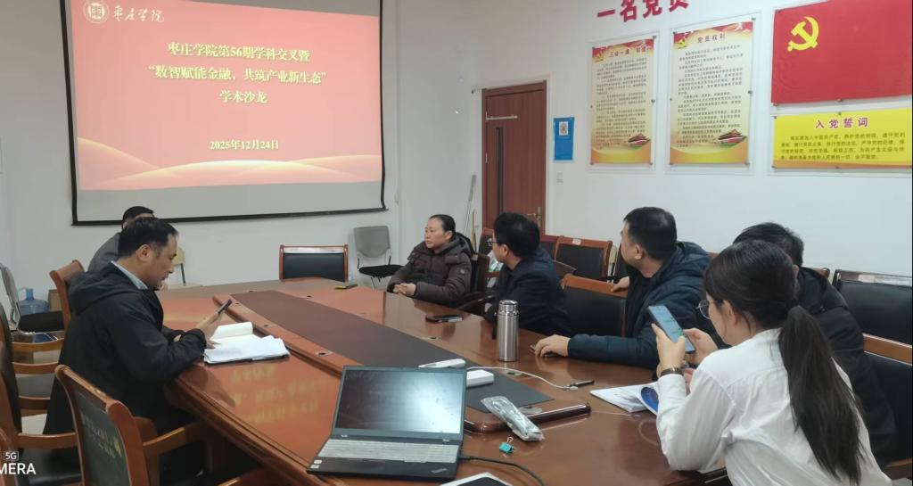 12月24日下午,由校研究生处主办、永利23411集团、经济与管理学院和枣庄银行承办的第五十六期学科交叉学术沙龙暨数智赋能金融,共筑产业新生态学术沙龙在薛城校区豁然楼A510会议室举行。永利23411集团、经济与管理学院负责人、枣庄银行代表及教师代表20余人参加。