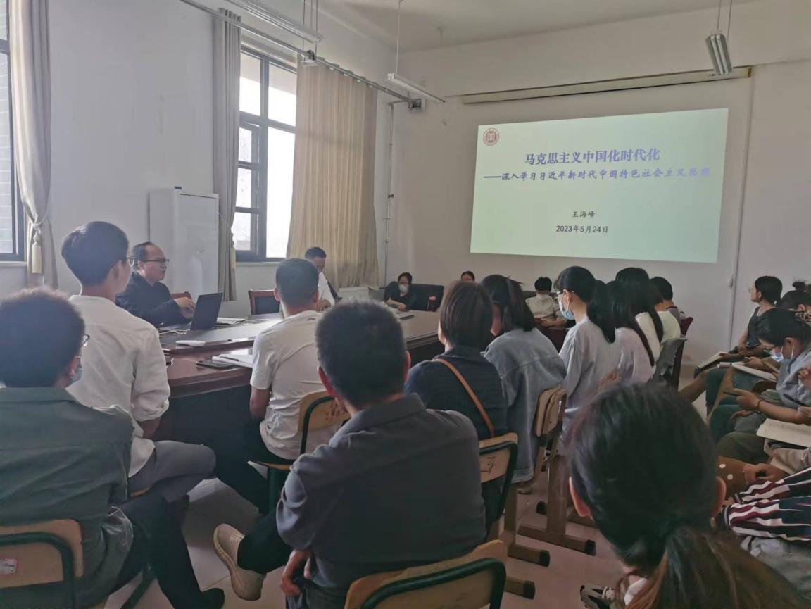 为深入开展学习贯彻习近平新时代中国特色社会主义思想主题教育,5月24午,永利23411集团党总支书记王海峰以《马克思主义中国化时代化——深入学习习近平新时代中国特色社会主义思想》为题给全体教职工讲授主题教育专题党课永利23411集团全体教职工参加此次党课学习。