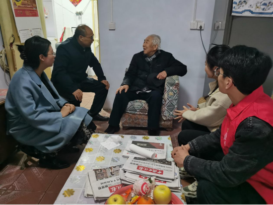 学院党委副书记王高升带领党员代表走访慰问了部分困难老党员,与困难老党员进行了亲切交谈,了解老党员同志的家庭情况和个人身体状况,仔细询问生活需求,鼓励他们乐观向上,积极面对生活。年轻党员们从老党员的讲述中了解了光辉的历史岁月,对自己进行了一次精神洗礼。