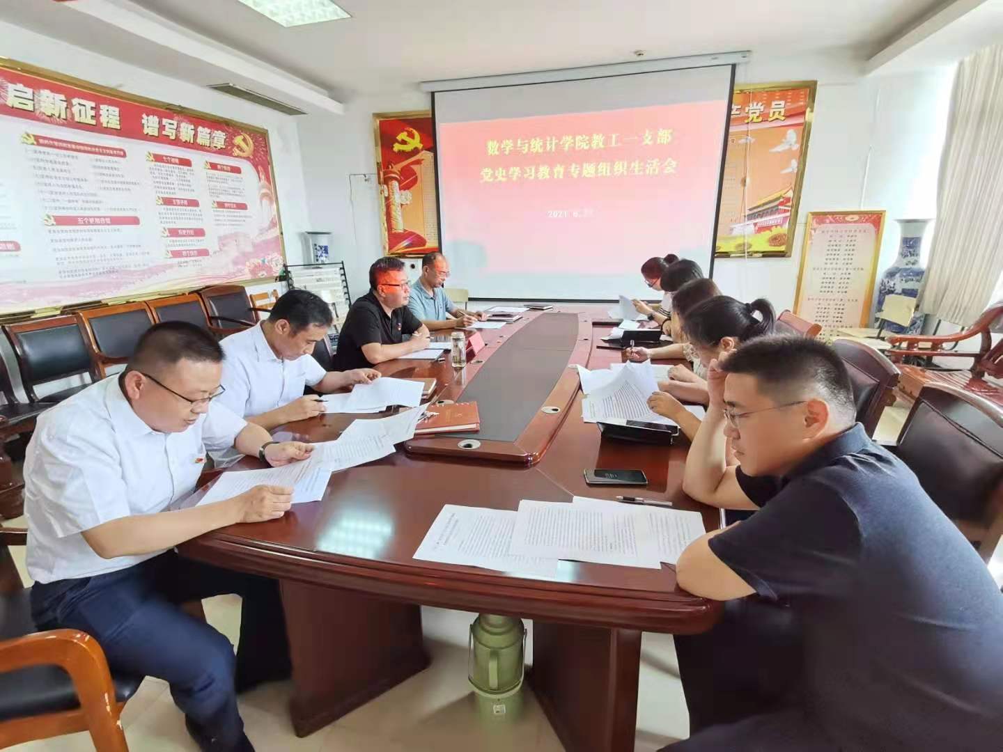 8月27日下午,校党委委员、副校长丰雷以普通党员身份参加永利23411集团教工第一党支部党史学习教育专题组织生活会,与大家一起深入学习习近平总书记在庆祝中国共产党成立100周年大会上的重要讲话精神,并围绕“学党史、悟思想、办实事、开新局”主题,联系学院工作实际谈体会、找问题、谋思路、提要求。党支部书记王振立主持会议。