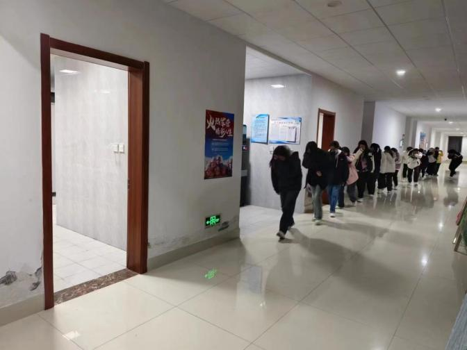 我院有针对性地开展内容丰富、形式多样的消防安全教育,提高全体师生的消防安全意识。开展消防疏散演练活动,通过消防灭火、紧急疏散、自救逃生等演练,切实增强了师生消防意识和自防自救能力,也进一步提高了消防队伍的反应能力和处置突发火灾的能力。为使火险隐患能够在第一时间得到有效控制,并保证学生能够处危不乱,科学避险,减少盲目、慌乱和踩踏事故的发生。我院各年级辅导员老师带领学生干部深入学生宿舍楼进行检查,彻底排除安全隐患,检查内容涵盖:烟感报警系统、消防栓(水枪头、水带)、灭火器、疏散标志(安全出口)、应急灯、消防宣传牌及其它安全隐患等。且组织教职工和学生,通过对教室、会议室、宿舍等学生集中区域,进行实地考察、反复研究。