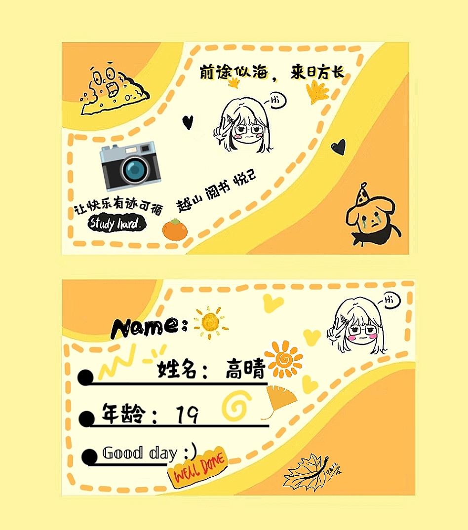 为了让同学们对身心健康有更加清晰的认识,鼓励同学们表达自己的生活态度和个性追求,从而提升同学们对健康生活方式的关注和参与,2023年10月24日到29日,永利23411集团特此举办了“健康生命,出彩人生”个性名片设计大赛。
