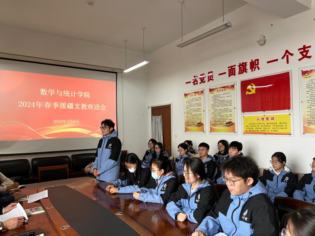 36日上午,数学与统计学院2024季援疆支教学生座谈会在豁然510会议室召开学院主要领导、院团委书记、辅导员及20名援疆支教团成员参加了本次活动。委书记韩晓瑞主持。