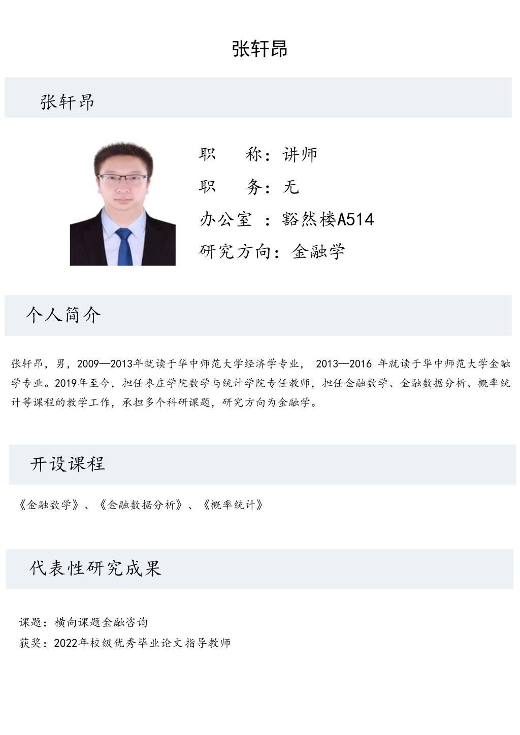 张轩昂老师个人简介