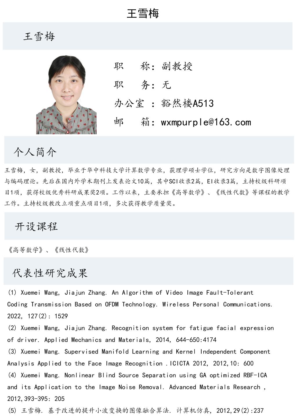 王雪梅老师个人简介